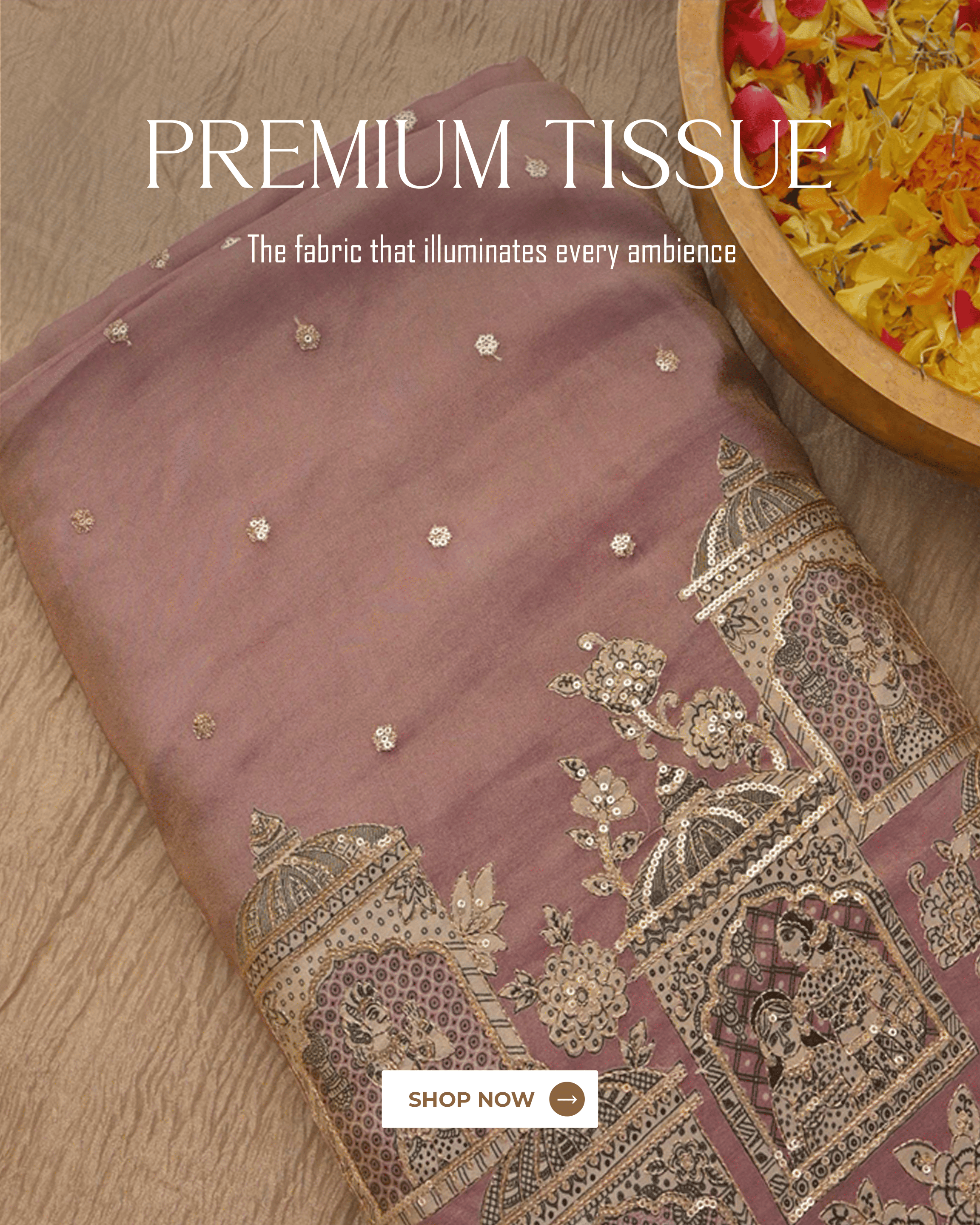 A collection of handloom fabrics made from the finest yarns, designed for modern women who value the subtle skill of weaving and Indian culture. The collection includes deeply woven silks, delicately patterned cottons, and durable linens, each expressing a narrative about the region and the artists who made them.