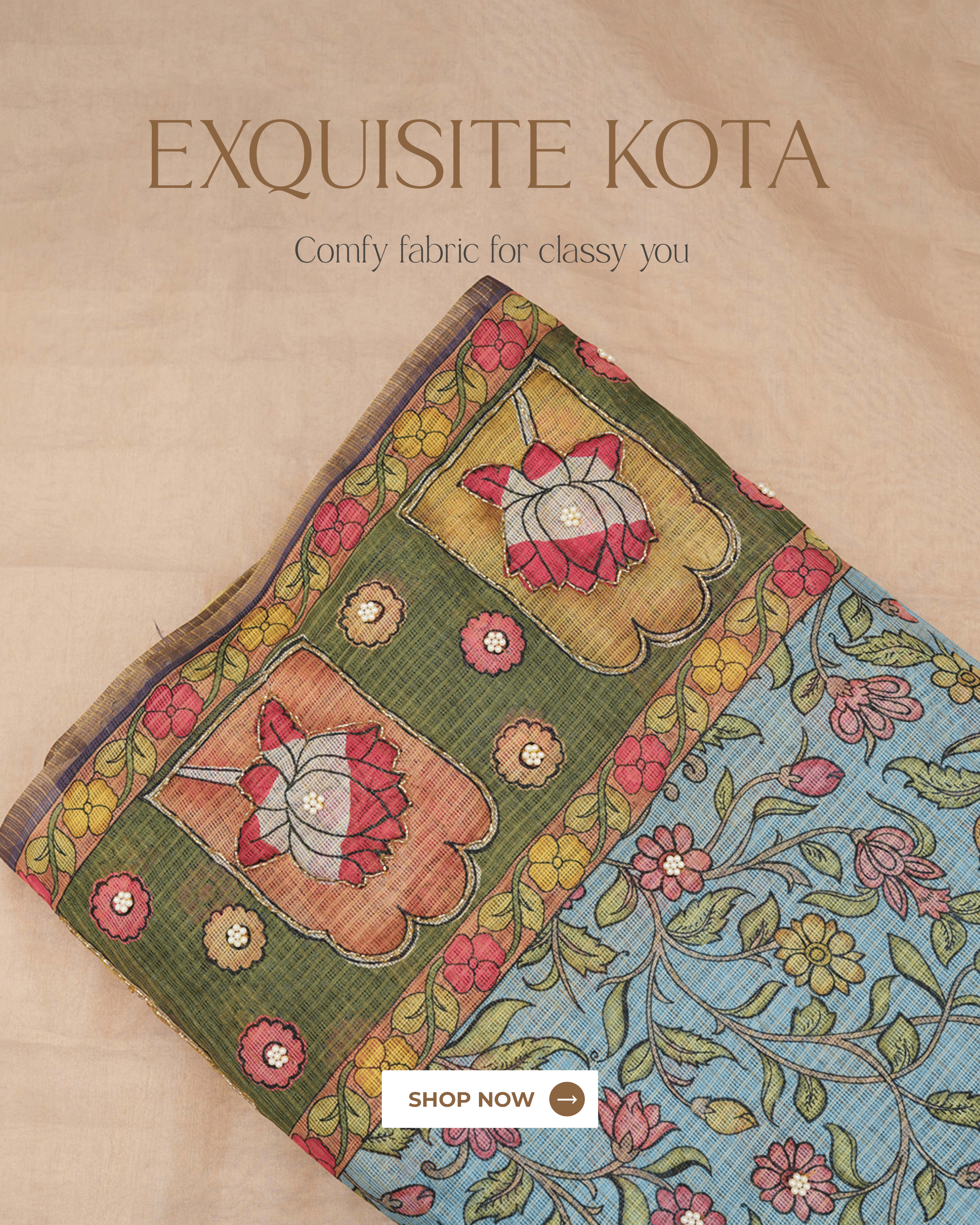 A collection of handloom fabrics made from the finest yarns, designed for modern women who value the subtle skill of weaving and Indian culture. The collection includes deeply woven silks, delicately patterned cottons, and durable linens, each expressing a narrative about the region and the artists who made them.